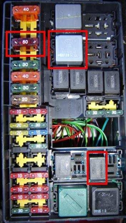 A tady je pojistková skříň v motoru a označená místa pro relé a pojistku (dodal žirafak)