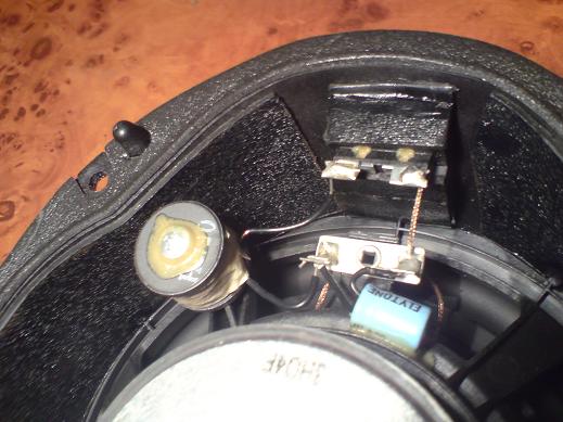 A este jedna fotka premiovych repro. Ozvucnica, v ktorej drzi je z PVC , cize som ju "vytlmil" asfaltovym platom, na tychto premiovych je aj nejaka dost jednoducha vyhybka/filter , to na tych obyc nebolo.