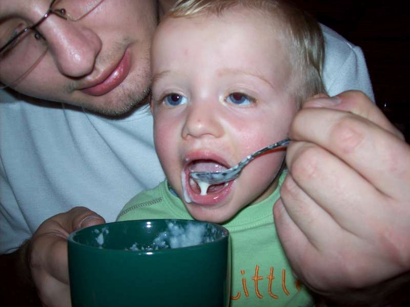 A jedny z posledních:samozřejmě i vzorný otec se musí postarat o syna.Něco dobrého/tedy asi dobrého/mu připravil,ale bylo to takové divné.Sypal mu do misky takový bílý prášek a nechtěl nám v žádném případě prozradit co to je .