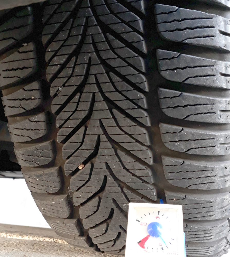 A trochu jiný průběh profilu pneu (srovnání nové vs ojeté) v případě zimních pneu Continental Wintercontact TS830P. Nové mají prořezy přes celé bloky, při ojíždění se však zmenšují. Já je měl jako ojeté mezi 6-3mm a v zimě byly +/- OK, ale hlavně to byly "nejlepší zimní na letní ježdění", protože po ojetí pod ~5mm se bloky zpevnily a subjektivně jsem zatím lepší pneu na přední nápravě Focusu nezažil...