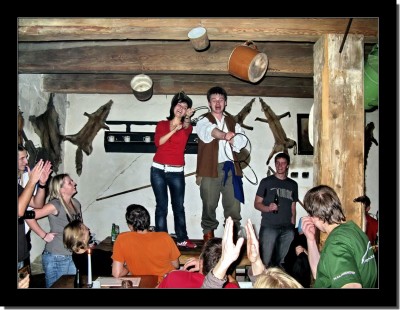 Tak jsem tak na roztrhání,že jsem se na net dostal až teď.Dopoledne hokej a doteť na návštěvě s prckem u babičky a dědy.Rádi jsme poznali nové i staré tváře.Jasio,supr nápad se podívat do téhle krčmy.Docela jsem si zvykl na tu jejich řeč.Supr zábava a doporučuji všem,kdo tam nebyl,ať se tam jede "nažrat a nachlastat"