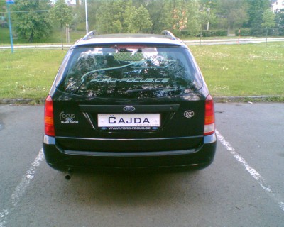 tak i ja mam uz zadek polepeny, fofo.cz podlozku pod spz jsem timpadem vymenil za ciste cernou, a sve podlozky presunu na fofo od rodicu.. ted kutim ze bych si nechal hodit napis na predni okno ford-focus.cz.. v stejnem fontu jako je zadni nalepka.. a mensi pismo..treba jen do rohu.. no uvidim zdali to projde pres kolegu "cajdu", ktery je hlavnim poslickem mezi dodavatelem "horstem"