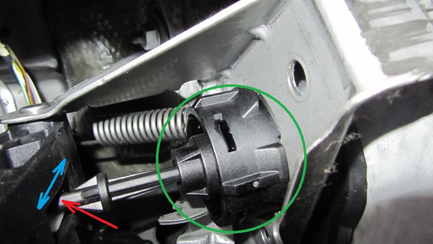 Ahoj, potýkám se s podobným problémem jako kolega přede mnou. Nějak jsem při vystupování blbě zavadil nohou o spojku a nejspíš mi praskla u konce ta tyčka co jsem označil červeně a teď se tam vaklá ve směru modré šipky. Asi budu muset vyměnit celý hydraulický válec, ale povolil jsem ten kovový držák, co drží pedál nejde to vyndat. Musí se otočit tím plastovým bazmekem co jsem zakroužkoval ? Nedělal jste to někdo, nebo není to někde popsané ve fordím servisním manuálu ? Díky.
