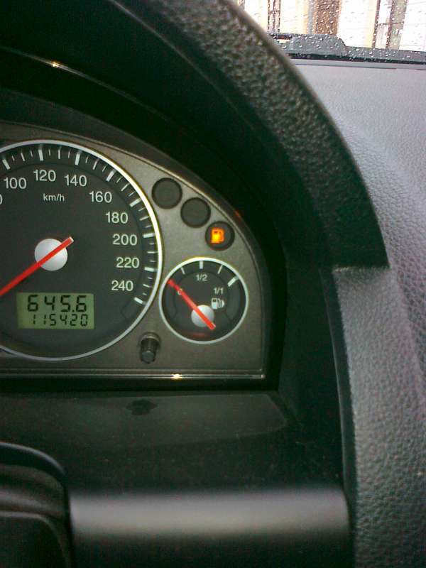 Jo,to zní logicky,mě jen zarazilo,že prvně od plné neklesala ručička stejně s dojezdem.Měl jsem dojezd 2km,ale ručička byla nad červeným.Podle mě u normánlního auta,ta rafička sleze za červené třeba o 5mm....u mě ne,viz. fotky.To by pak znamenalo,že nafty je tam ještě hodně,ale palubák počítá hlouposti....