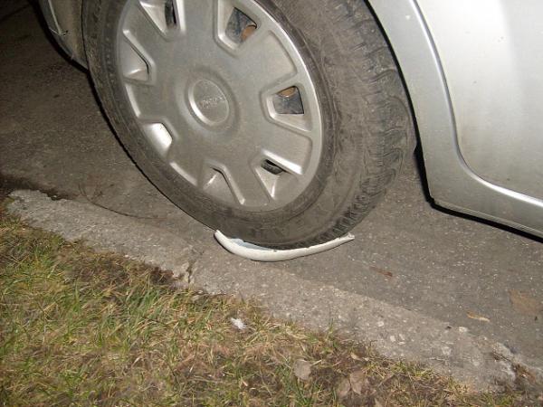 taky možná varianta, ale jak se ten dekl dostal, tam kde je? jak jsem měl možnost vidět všechny nafocené fotky, tak tam určo nenacouval, i když tam místo bylo, protože by musel ten dekl přejet zadním kolem a to by ho rozlomil, ale na této fotce to tak nevypadá.
