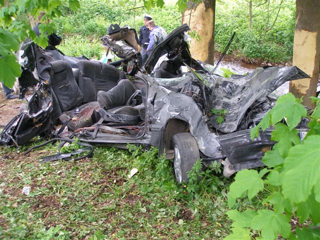 Včerejší (20.5) nehoda vozidla Ford Scorpio. Bohužel čtyři mrtví a jeden těžce zraněný.