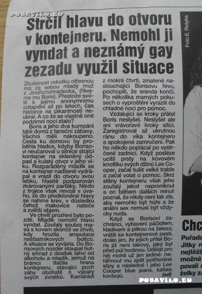 Tohle se "stalo" snad ve všech městech v naší republice, tenhle příběh koluje snad od tý doby, co popeláři přistavili první laminátovou popelnici na sklo...okurková sezóna, no, tak tahají starý příběhy. Ale tomu, komu se to tenkrát opravdu stalo, nezávidímZAHRY píše:Jo to je hruza to se stalo i v Prostejove