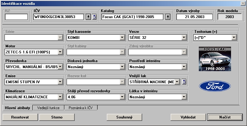 Muzu poprosit take o identifikaci VIN : WFONXXGCDNXJ77834