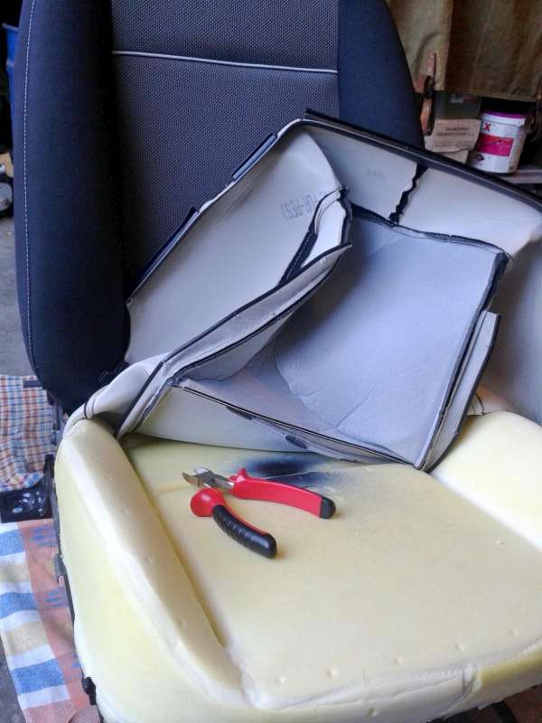 1) Vyndáme sedadlo z auta a uděláme si dostatek prostoru (nedokážu si představit dělat vše bez vymontování sedadel z auta, předevsím sundavání plastů).