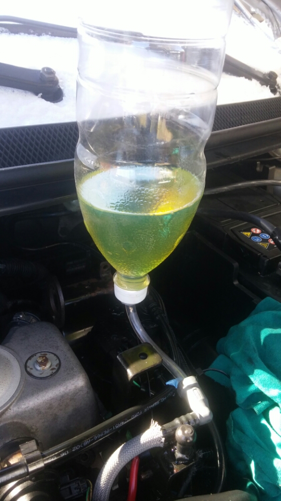 To je blbost, bubliny by šly nahoru. Cokoli rozpojovat je na houby. Na nastartování by stačily 3 deci