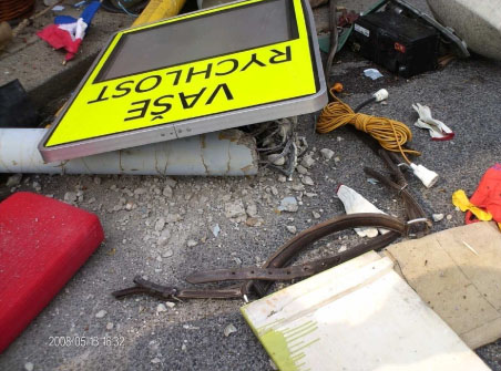… prakticky by mohla rychlost zůstat uložená v paměti toho radaru. Betonový stožár, vyztužený ocelovými lany je na dvakrát přeražený. Holandské státní barvy náraz také neustály ...