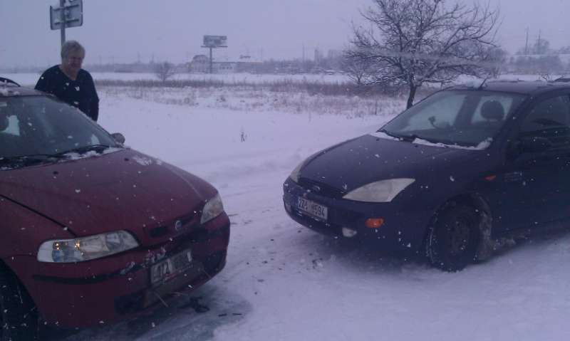 Dopadlo to nadmiru fajně. Fiat předek zdemolovany, bo kapota ohla, maska v hajzlu, naraznik rozbity, chladič vytečeny, světla zamotane. A fokusek? Deset ceňťaku praskly naraznik a trocha červene fijaťacke barvy na světle.