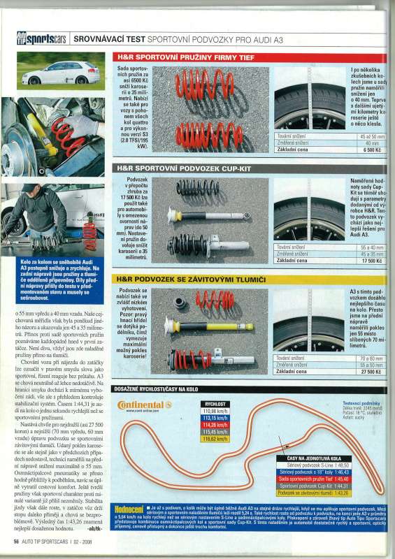 K tématu stavitelných podvozků obecně a jejich vlivu na jízdní vlastnosti jsem našel pěkné povídání ve starším čísle české mutace německého SportCars. Je to velmi poučné čtení. Redaktoři se zabývali praktickým dopadem běžných úprav vozidla na chování na okruhu (včetně výměny sériového podvozku za sportovní) a vše hezky poměřili.