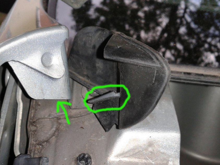 Tak jsem se k tomu konečně dostal, umístil gumu na (doufám) správné místo. Na přiložené fotce je guma na straně spolujezdce. Zobák patří pod sklo. Na gumě je ještě jeden zobák, který přijde zacvaknout pod blatník, viz přiložené foto.