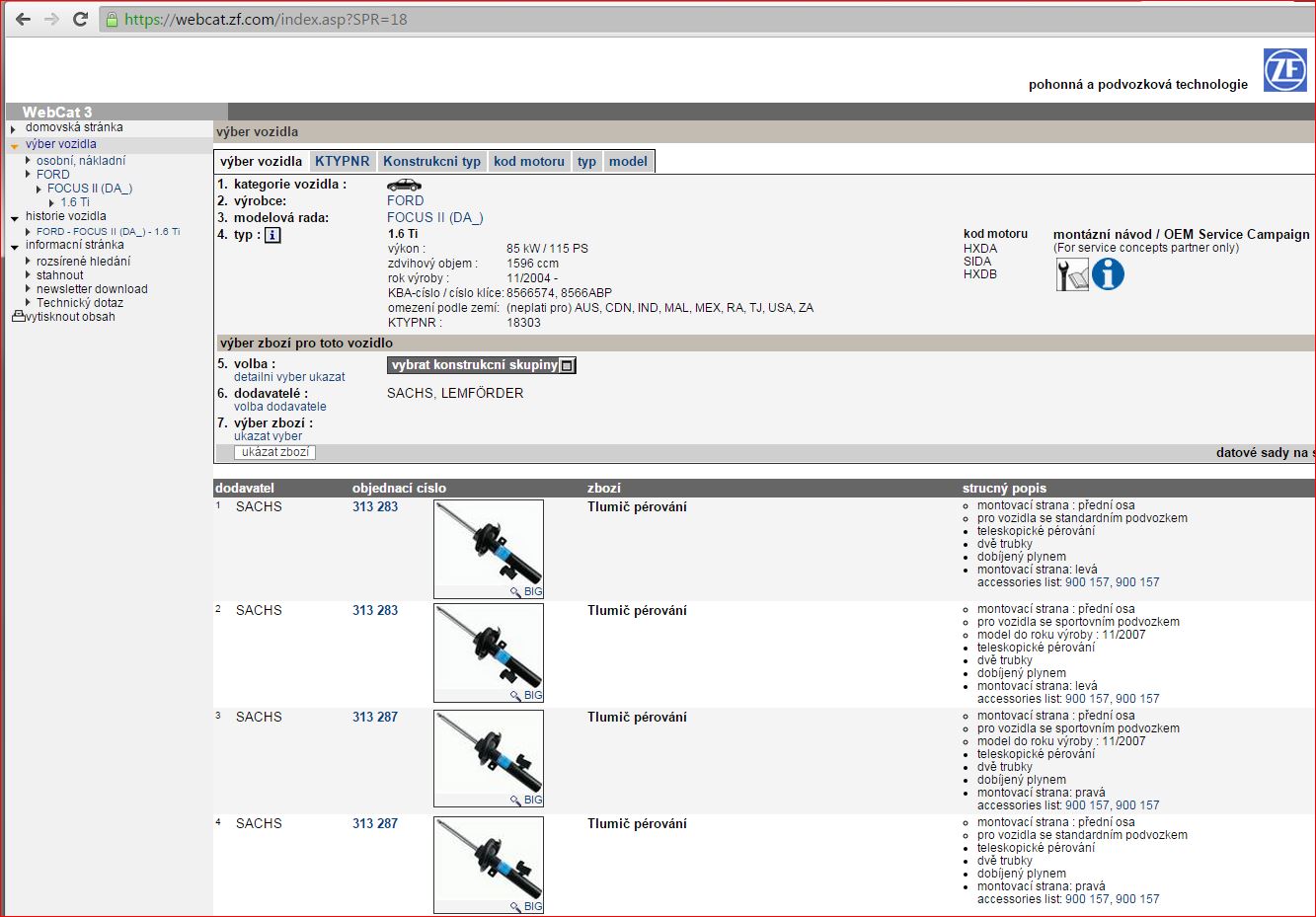 Druha vec, kt. hovori proti sachs tlmicom je to, ze pod rovnakym cislom dielu maju byt tlmice pre standardny aj pre sportovy (cize tvrdsi) podvozok, vid obrazok. A nakoniec - hoci to pre teba nemusi byt relevantne - zla skusenost jednoho naivneho majitela focusu s motorom 2.0 benzin, kt. tieto tlmice pred 3/4 rokom osadil, a uz to 100x olutoval... pripadne viac info do SZ.