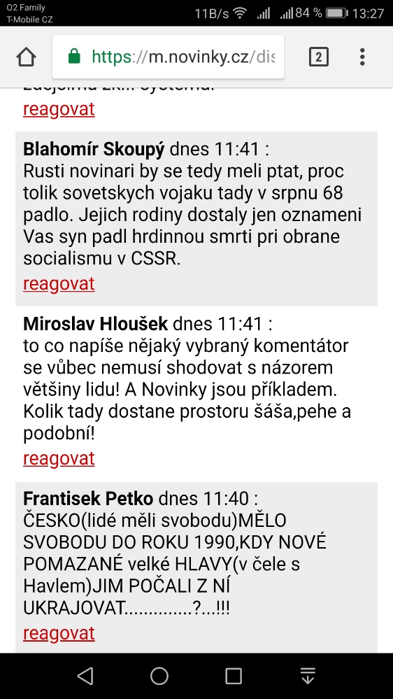 Když to tak sleduju že si připomínáme naši ostudu a řešíme který komunista byl lepší nebo horší tak je mi na blití navíc tohle posíláme ven ! A k tomu pár pomatenců na ulici kteří si tuhle událost vyložili po svém a tahají do toho politiku dnešních dnů včetně urážení prezidenta a premiéra to je pro svět opravdu vizitka jak čech je obyčejný hloupý honza co je naštvaný jen proto že někdo si dovolil mít jiný názor . Pár lidí Pražské kavárny kteří řeknou svůj názor do médií a myslí si že mluví za zbytek národa to je opravdu vizitka našeho národa. Já ty sračky vypínám , tohle nás nikam neposune.