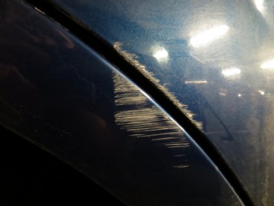 Myslim, ze to funguje takto: metalizu tvoria 2 vrstvy - samotna farba (pigment?) a vrchny bezfarebny kryci lak. Jemne zatriem vsetky tie skrabance farbou. Necham 10 minut mierne zaschnut, potom poriadne rozlestim tak, ze farba ostane v skrabancoch a vsetky prebytky na vrchnej krycej vrstve sa odlestia. Tak ostane iba farba vnutri tych skrabancov. No a vysledok potom vyzera takto: