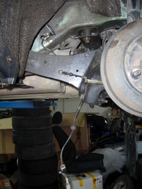 Auto zvedneme, odbrzdíme!!! a sundáme kola Rozpojení lanovodu ruční brzdy Odpojení brzdové hadičky a čidla ABS edit foki : rozpojeni lana rucni brzdy - v nejhorsím pripade preríznout