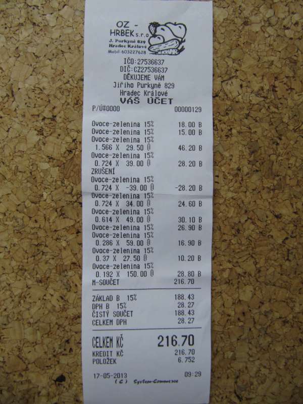 Dneska jsem se nestačil divit v místní zelenině, když jsem dostal doklad. Nějak se mi nepovedlo vyčíst co že jsem to vlastně koupil