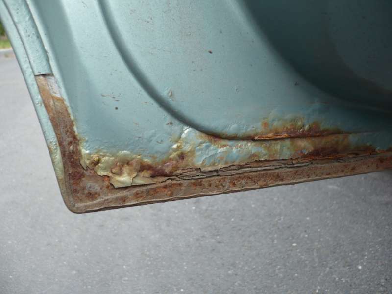 Já si přesně takhle vypadající dveře udělal sám (skoro). Koupil jsem barvu 0,5l (ale to i na nárazník), vzal flexu a odrbal až na čistý kov. Nastříkal základovkou ve spreji, pak to (nebijte mě) vzal akrylovým tmelem místo "hiousenky". Nechal jsem to asi tři dny, zase základ a pak lak... A vypadá to jako nové. Nevím na jak dlouho, ale za ty peníze (barva a stříkání) to stálo.