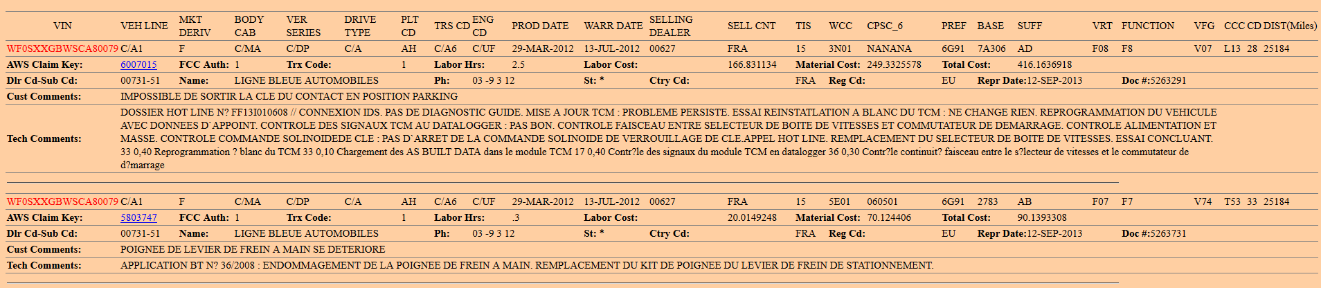 mohl bych poprosit o záruční opravy tohohle Mondea? Na fordzoně 5 záznamů.