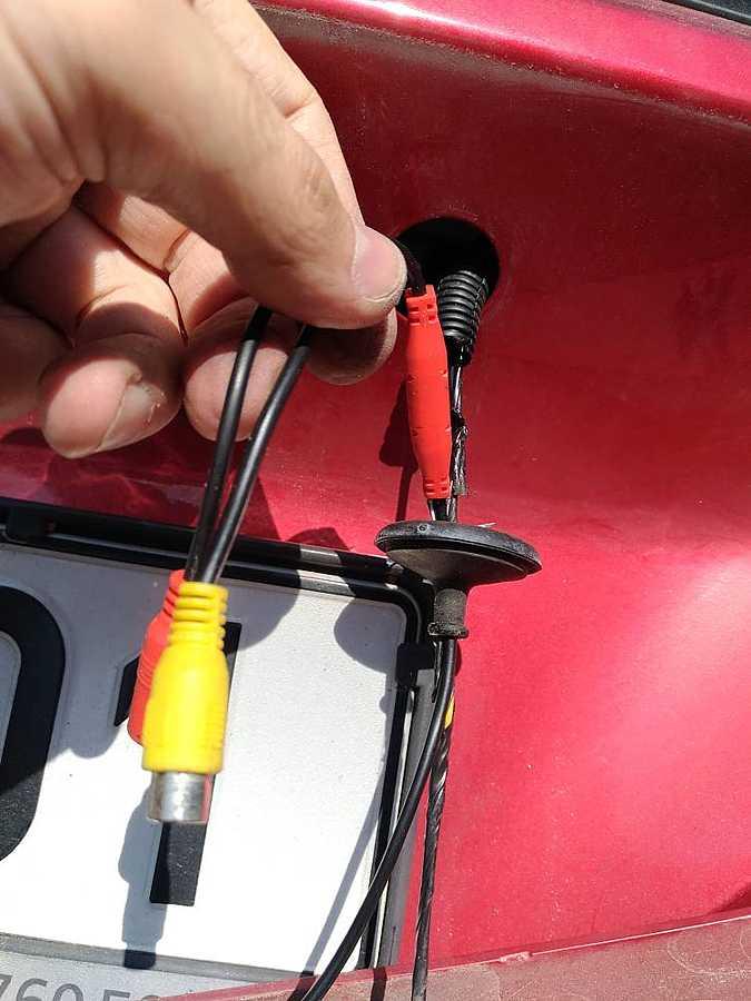 Takže môžeš vlastne ignorovať ten červený káblik, ktorý ide spolu s cinchom a normálne len od svetla spiatočky natiahni kábel k tomu druhému konektoru (ktorý si ukostroval) a hotovo.