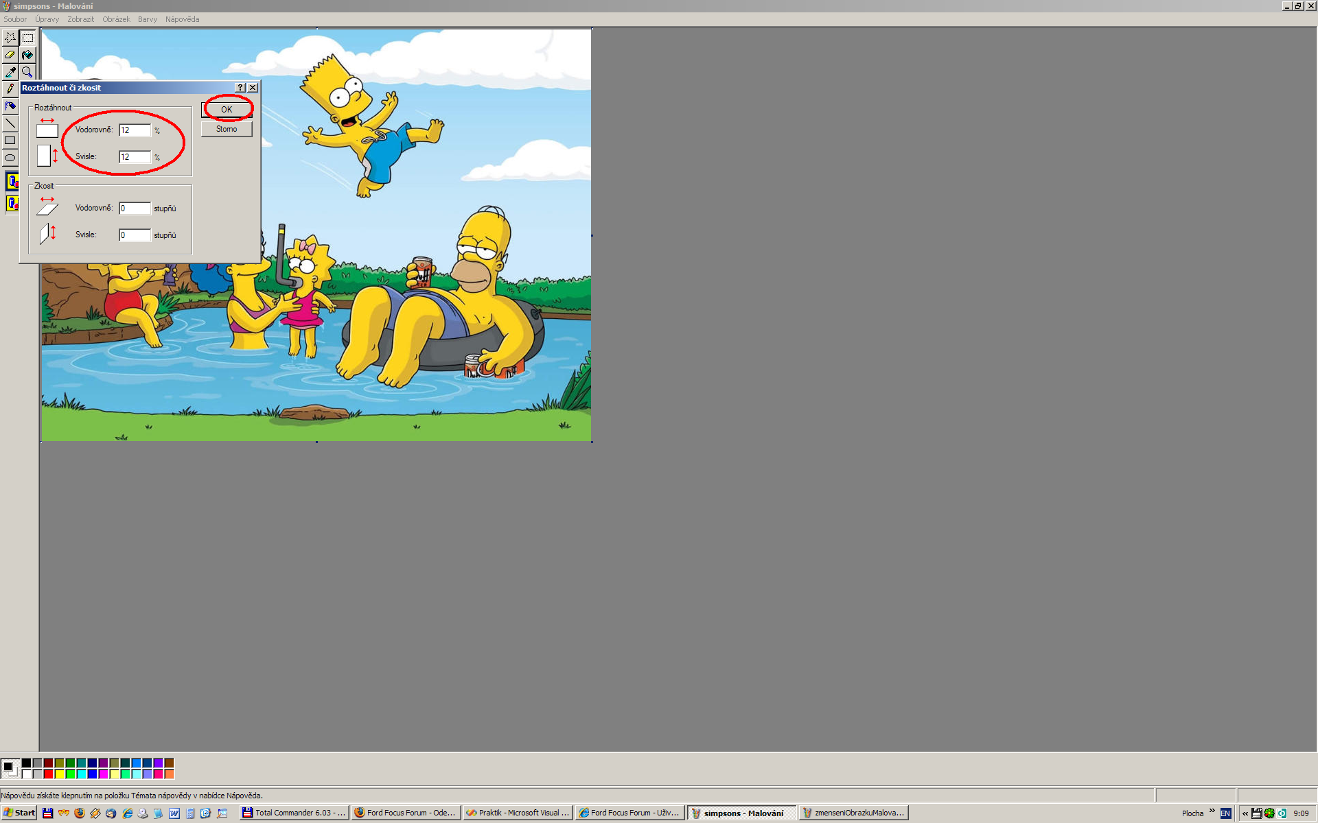 [2] pravym tlacitkem mysi klikneme na otevreny obrazek a vyberem z nabidky Obrazek - velikost obrazku [3] zadame pozadovanou velikost (150 pixelu) do jednoho policka, druhe nechame "svazane" s prvnim [4] zmackneme Skalovat