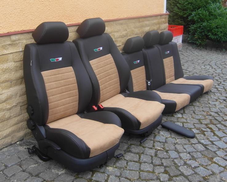 k cenám co chcete vědět ..komplet sedadla předek + zadek v umělé kůži vyjdou na 6000,- v kůži pravé 12000,- tapeci vyjdou na 2200,- v případě předělání látkových částí ..pokud jako jsou u toho bílého komplet tak 6000,- je to pakárna proto takovýá cena ...více fotek mé práce na http://www.woo-doo.eu