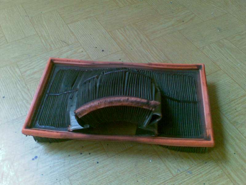 Zdravím všechny na foru.Dnes se s Váma musím podělit o svou radost.Posledních čtrnást dní pozoruji že auto nějak netáhne ,dost kouří a je jako po smrti.Mám FoFo I 1,8 TDdi rv 2000.Koupil jsem ho v prosinci 2009 s doklady od Brněnského servisu Ford ATOMA o kompletní výměně náplní,filtrů,předních brzd,a zadního obložení včetně prasátek.Původní majiter to nechal dělat před STK a pak auto hned prodal z rodinných důvodů.Peněz to stálo ,že jsem se málem zalkl,jak jsou u Forda drazí.Po dnešní jízdě ze znojma jsem zestárnul o několik měsíců , protože jsem málem nedojel.Hned jsem začal hledat závadu proč to jede stále hůř a hůř.Jen co jsem sundal víko od air boxu jsem byl doma.Od té opravy jsem ujel asi 6000 km a tak jsem nečekal to co jsem viděl.Vzduchový filtr byl nasátý až skoro do sací trubky viz foto