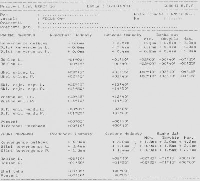 No u mna bude mozno problem v tom, ze geometriu mi nerobil Ford... Pruziny mi menil jeden servis V Hornej Strede, kde mam velmi dobre skusenosti... a geometria bola robena hned po montazi v servise Toyoty, kde teda ako som pisal mali len parametre pre standard odpruzenie Focus II a nie eibach...