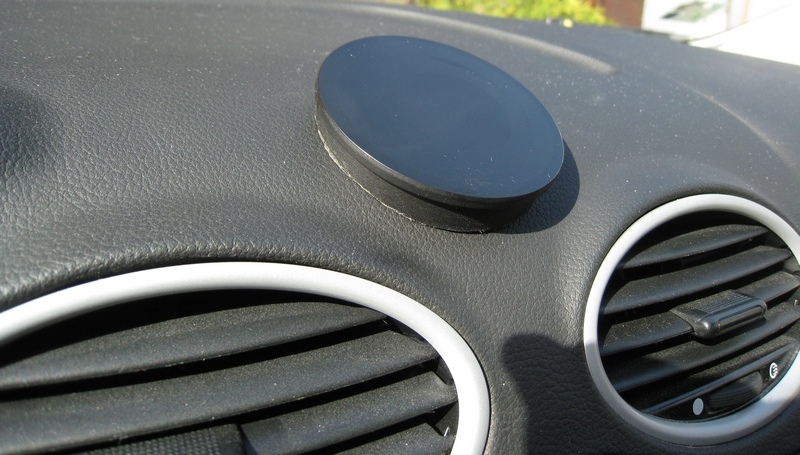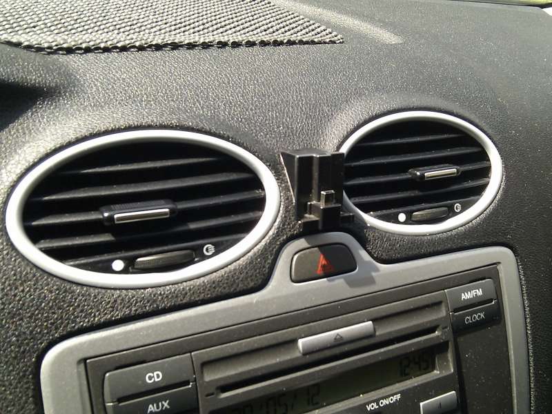 Nemate nekdo fotky auta s vyndanou palubni deskou? Zajimalo by me jestli mezi vydechy klimatizace je nejaky nosnik. Chtel bych k nemu prisroubovat drzak mobilu, viz foto. Ted ho mam prilepeny oboustranou paskou, ale na slunicku to bohuzel nedrzi