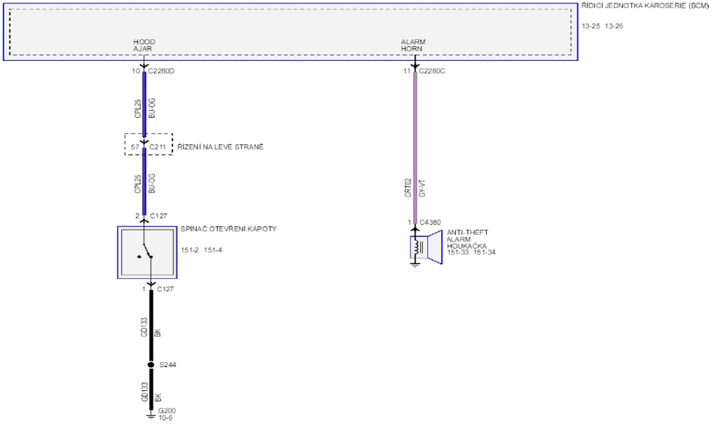 - sbernice vede pres konektor C211 (jako signal od kapoty) na BCM do sediveho konektoru na pin 24 (stejny pro ultrazvuky