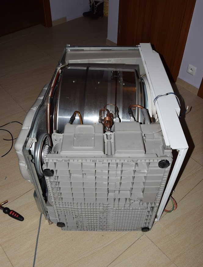 Již 9 let doma používáme kondenzační sušičku od AEG a to celkem intenzivně. V poslední době se snižovala účinnost sušení a zacpával se odtok kondenzátu do nádržky. Na netu jsem sice nějaký rady na čistění našel, ale nic důkladného. Tak jsem se do toho trochu pustil.