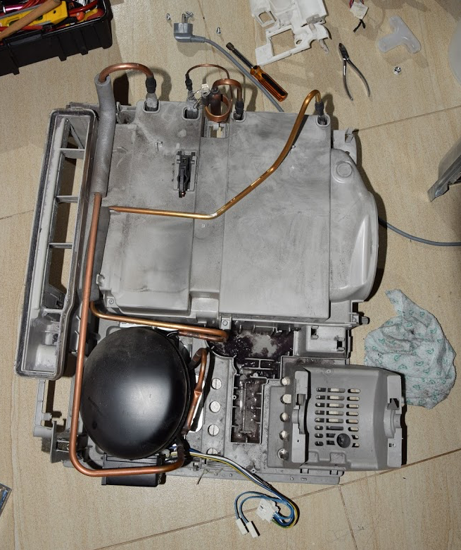 Sušičku je potřeba kompletně rozebrat a mřížky výparníku požárně propláchnout waplkou. Sušička maká zase jako nová, ještě jsem při té přílžitosti měnil ložisko na ventilátoru a na vodícím kolečku bubnu.